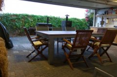 חצר מרווחת עם פינות ישיבה ופינת BBQ מאובזרת.