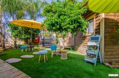 חצר גדולה עם בר משקאות, פינת BBQ ועוד מגוון אטרקציות.