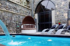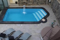 בריכת שחייה, ג'קוזי ספא, מיטות שיזוף, פינות ישיבה, ריהוט גן.