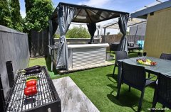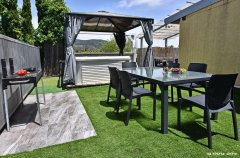 חצר מרווחת עם פינת BBQ ונוף עוצר נשימה.