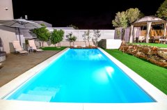 בריכת שחייה מרעננת, ג'קוזי ספא מפנק, מיטות שיזוף ופינות ישיבה, נוף גלילי עוצר נשימה.