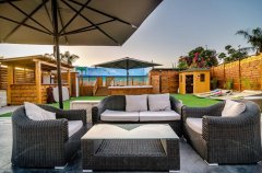 בריכת שחייה, ג'קוזי ספא, פינת BBQ, סאונה יבשה, מיטות שיזוף, פינות ישיבה.