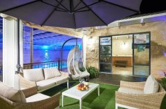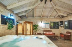 סאונה יבשה, ג'קוזי ספא, בריכת שחייה, שולחן פינג פונג וסנוקר, פינת BBQ.