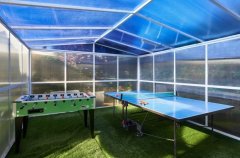שולחנות משחק, סאונה יבשה, ג'קוזי ספא ופינת מנגל מקצועית.