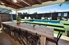אבזור מלא, חצר מטופחת עם פינות ישיבה רבות.