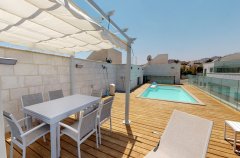 בריכת שחייה, גריל גז, מיטות שיזוף.