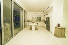 מטבח מאובזר מכל טוב וסלון רחב ידיים נמצאים במתחם הפנימי של האחוזה.