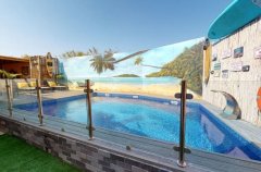 בריכת שחייה, ג'קוזי ספא, מיטות שיזוף, פינת BBQ.