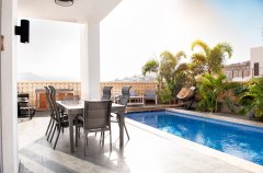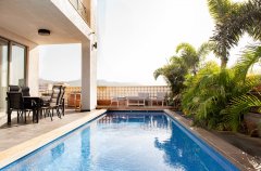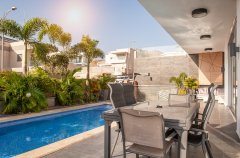 בריכת שחייה, ג'קוזי ספא, מיטות שיזוף, שולחן סנוקר, פינת BBQ.