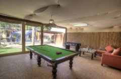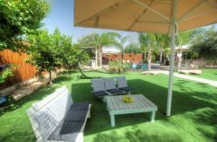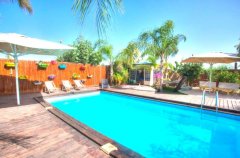 חצר גדולה בכל מתחם עם בריכת שחייה מהנה וג'קוזי, שולחנות משחק