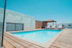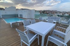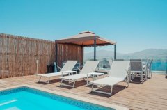 בריכה מחוממת בעונה, מיטות שיזוף, פינת מנגל.