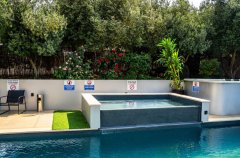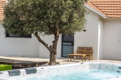 בריכה פרטית מחוממת ומגודרת, ג'קוזי חיצוני מרווח ל-15 נופשים, עמדת מנגל מקצועית, שולחן אוכל חוץ ל-20 אורחים
