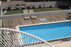בריכת שחייה, פינת מנגל, מתקנים לילדים, טרמפולינה, מיטות שיזוף.