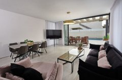 4 חדרי שינה מרווחים, 2 חדרי רחצה וחדר שירותים נפרד אחד, סלון מרווח, מטבח מקצועי ומאובזר היטב, בריכת שחייה מגודרת, מיטות שיזוף ופינות ישיבה, פינת מנגל מקצועית, שולחן פינג ומגרשי כדורגל וכדורסל, מתאים גם לציבור הדתי.