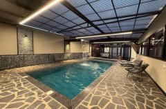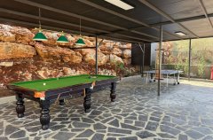 וילה מרהיבה עם 6 חדרי שינה מעוצבים, 4 חדרי רחצה מרווחים, בריכה מגודרת, מקורה ומחוממת, מטבח חיצוני עם פינת BBQ מאובזרת, שולחן אוכל ל-18 אורחים, שולחן סנוקר, פינג פונג, מגרש כדורגל ונוף הרים עוצר נשימה