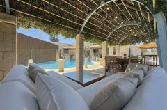 בואו להתארח בוילה יוקרתית עם בריכת שחייה פרטית מגודרת, 9 חדרי שינה מפנקים, 4 חדרי רחצה מעוצבים, סלון מרווח ונוח, מטבח מאובזר בכל הנדרש, פלייסטיישן 5 לילדים, עמדת מנגל מסודרת, פינות ישיבה, מיטות שיזוף, ריהוט גן, חנייה פרטית ל-10 רכבים ועוד!
