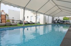 בריכת שחייה, מתפחים לילדים, שולחן סנוקר, שולחן כדורגל, שולחן פינג פונג, פינות ישיבה, מיטות שיזוף, 3 ג'קוזי, ריהוט גן.