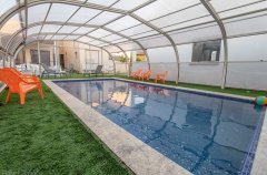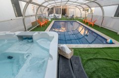 בואו להנות מוילה מפנקת עם ג'קוזי ספא מרגיע, בריכת שחייה מחוממת ומקורה,