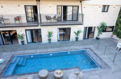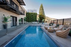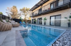 בריכת שחייה פרטית בנוייה ומגודרת, פינות ישיבה נוחות ומרווחות, מיטות שיזוף