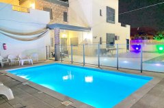 בואו להתארח בוילה מעוצבת עם 5 חדרי שינה + 5 חדרי רחצה מפנקים,מטבח מאובזר בכל, בריכת שחייה מחוממת, מגודרת ומקורה, פינות ישיבה, מיטותשיזוף, ריהוט גן, שולחן פינג פונג, טרמפולינה ונדנדות לילדים, סלון מרווח ונוח ועוד!