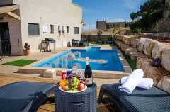 בריכת שחייה, שולחן פינג פונג, שולחן כדורגל, פינות ישיבה, מיטות שיזוף, ריהוט גן, עמדת מנגל