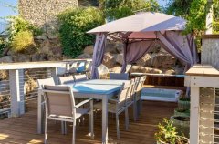 מטבח חיצוני גדול ומאובזר, בריכה מחוממת מגודרת ומקורה, ג'קוזי ספא מרגיע ל-6 אנשים, שולחן גינה המתאים ל-20 אורחים, עמדת מנגל BBQ מאובזרת, פינות ישיבה מרווחות, מיטות שיזוף מפנקות ושולחן הוקי אוויר