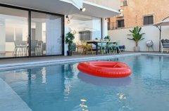 וילה יוקרתית עם חמישה חדרי שינה, ארבעה חדרי רחצה, בריכה פרטית מחוממת ומגודרת, מתאימה למשפחות, זוגות, קבוצות והציבור הדתי