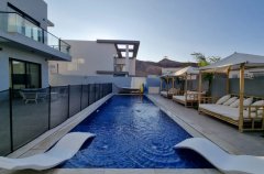 בריכת שחייה מגודרת לכל המשפחה, 6 חדרי שינה מפוארים, 3 חדרי רחצה מאובזרים, עד 17 אורחים, פינת BBQ גדולה, שולחן סנוקר ופינג פונג, ג'קוזי ספא, נוף חלומי לים, חנייה זמינה ל4 רכבים, מטבח מאובזר בכל טוב, מתאים למשפחות וקבוצות.