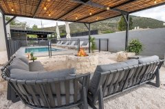 בריכת שחייה בנויה ומגודרת, ג'קוזי ספא מרווח ל-8 איש, פינות ישיבה נוחות, מיטות שיזוף, ריהוט גן איכותי, שולחן פינג פונג, ערסל מרגיע ועמדת מנגל BBQ מאובזרת