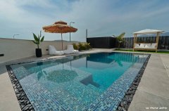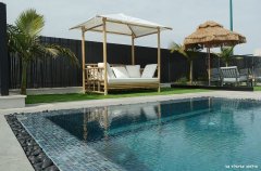 מסך שטוח בגודל 75 אינץ', בריכת שחייה, מכונת קפה/אספרסו, קמין חשמלי, עמדת מנגל BBQ, פינג פונג, מיטות שיזוף
