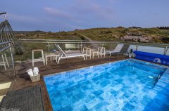 בריכה בנויה, מחוממת ומגודרת לבטיחות מרבית, ג'קוזי ספא מפנק ל-6 איש, פינות ישיבה נעימות, מיטות שיזוף, ערסל מרגיע ושולחן פינג פונג להנאה מושלמת.