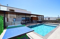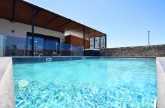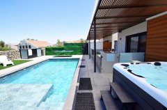 וילה יוקרתית עם 3 חדרי שינה מרווחים, 2 חדרי רחצה מודרניים, בריכה פרטית מרעננת, ג'קוזי ל-6 נופשים, מטבח חיצוני מאובזר היטב, חצר עם עמדת מנגל BBQ, ריהוט גן חיצוני, פינג פונג, מסך בגודל 85 אינץ' בסלון ומסכים בגודל 75 אינץ' בחדרים
