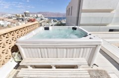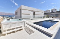 סלון מעוצב ונוח, בריכת שחייה גדולה, ג'קוזי ספא, פינות ישיבה, מיטות שיזוף,