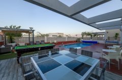 בריכת שחייה, פינות ישיבה, מיטות שיזוף, ריהוט גן, שולחן פינג פונג, שולחן סנוקר, מטבח חיצוני מאובזר