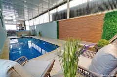 מנגל, בריכת שחייה מחוממת, מגודרת ומקורה, פינות ישיבה, מיטות שיזוף, ריהוט