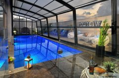 בריכה מחוממת, ג'קוזי ספא מחובר לבריכה, גג מיוחד בו ניתן להשתזף ולצפות על נוף מרהיב, קמין גז.