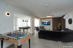 הווילה מציעה מגוון מתקנים כגון שולחן סנוקר, הוקי אוויר ופינג פונג, לצד עמדת BBQ ופינות ישיבה מרווחות בחצר מעוצבת.