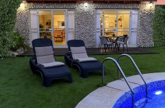 וילה נופש בעיר אילת עם 3 חדרי שינה מרווחים, 2 חדרי רחצה מאובזריםבריכת שחייה מחוממת בעונה, חצר מרווחת עם פינות ישיבה ומיטות שיזוך, פינת מנגל, סלון מפואר ורחב ידיים, מטבח עם אבזור מלא, אינטרנט אלחוטי חינם.