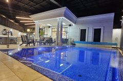 בואו להתארח בוילה מפוארת עם 4 חדרי שינה מפנקים,6 חדרי רחצה יוקרתיים, בריכה מחוממת, מקורה ומגודרת, ג'קוזי ספא מרגיע, מטבח חיצוני מאובזר עד הפרט האאחרון ופינת BBQ מצוידת, שולחנות אוכל עם כיסאות רבים, שולחן פינג פונג ומתקני חצר לילדים