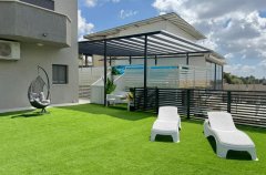 מתחם סוויטות יוקרתי ומפנק, 6 חדרי לינה מעוצבים, בריכה בנויה ומגודרת, שולחן פינג-פונג מקצועי, ג'קוזי ספא מרענן, מיטות שיזוף וריהוט גן חיצוני